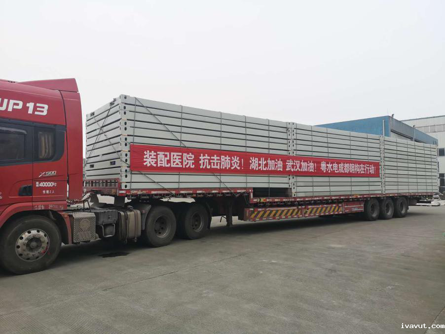 2月13日,建工集团所属粤水电建安分公司成都钢构公司生产制造的28套装配式集装箱房运往湖北咸宁通山县,助力人民医院隔离病房建设。目前,两辆挂着“装配医院,抗击肺炎!湖北加油!武汉加油!粤水电成都钢构在行动”横幅的运送车,目前已运达。