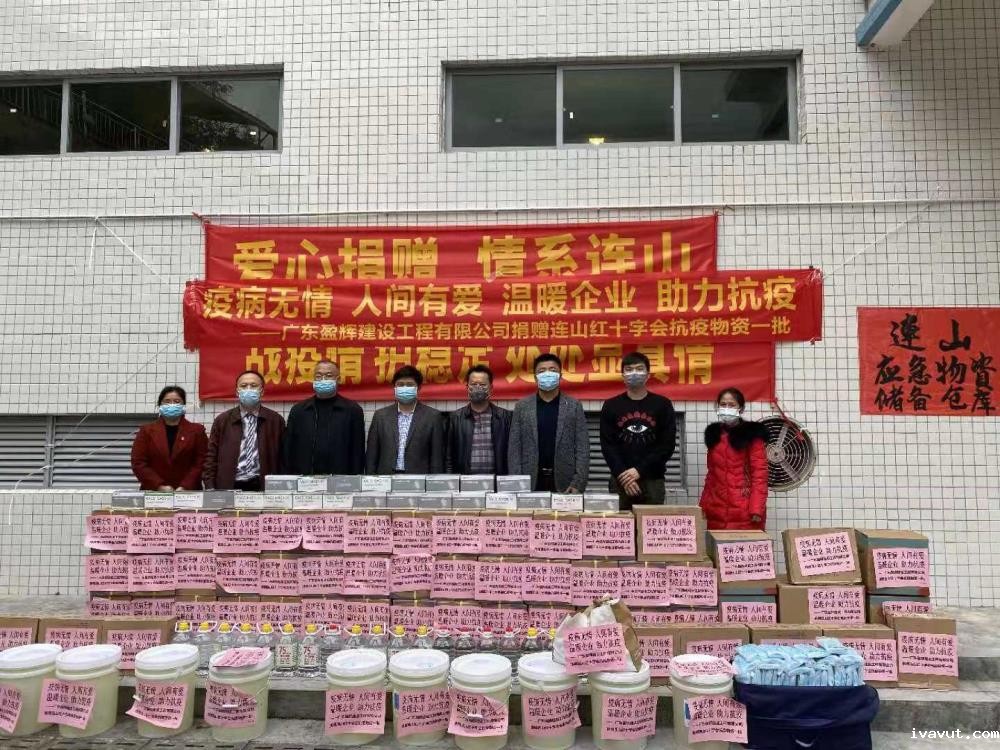 2月12日,广东盈辉建设工程有限公司向清远连山红十字会捐赠10箱消毒粉、95支免洗洗手液、10瓶洗手液、20桶75%医用酒精、3200个一次性医用口罩、20000个医手手套、20桶消毒水,约八万元防疫物资,用于疫情防控;