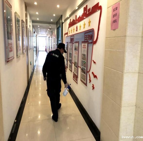 每日定时对办公区域、食堂、大楼外走道等区域进行喷洒消毒,并登记检查消毒表。
