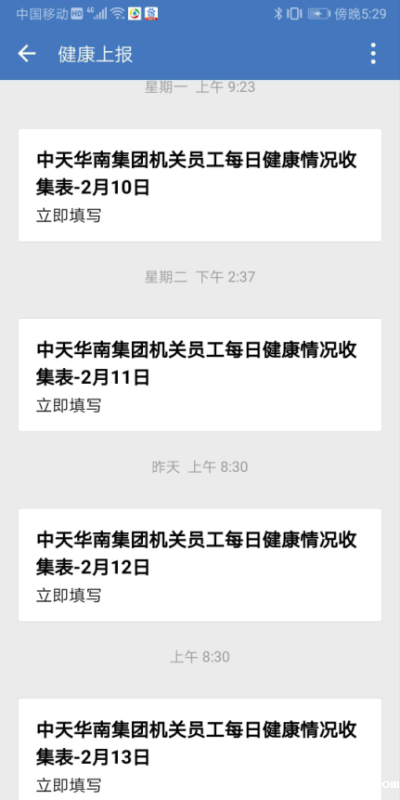 网络会议 每日健康情况收集表
