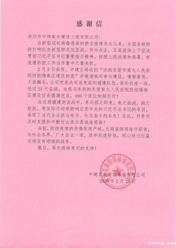 中饰南方十分重视此项目,项目经理连夜赶到东莞,以极快的速度,调度召集了150人的施工团队。主要任务是医院新建住院楼室内装饰及安装工程,中饰南方充分发挥工作经验,一丝不苟保质保量的完成任务,历时25天东莞市第九人民医院防控隔离区建设工程已顺利完成,480个床位已投入使用。