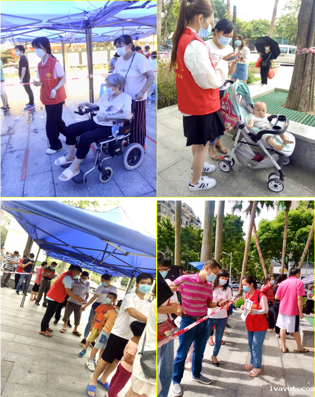 6月5日接到禅城区石湾街道党建办和平远社区党委关于禅城区第二次大规模核酸检测紧急通知,公司领导按既定预案再次组织党员和志愿者11人抵达平远社区文化长廊检测点,做好自身防护后便投入了紧张有序的工作。主要负责居民引导、测体温、协助居民进行信息登记、维护现场秩序、指引居民排队、帮助孕妇及行动不便的老人优先进行核酸采样等。从早上8点持续到下午3点,虽然任务繁重,但是能为抗击疫情贡献自己的一份力量军匠党员和志愿者也感觉不到一丝疲惫,全员众志成城,齐心协力防控疫情。