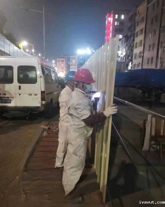 30余名队员从夜幕沉沉奋战至晨曦初露,11个小时接续作战,共完成封控区域围蔽施工400余米,为保护人民群众生命健康构筑起一道坚不可摧的安全屏障。
