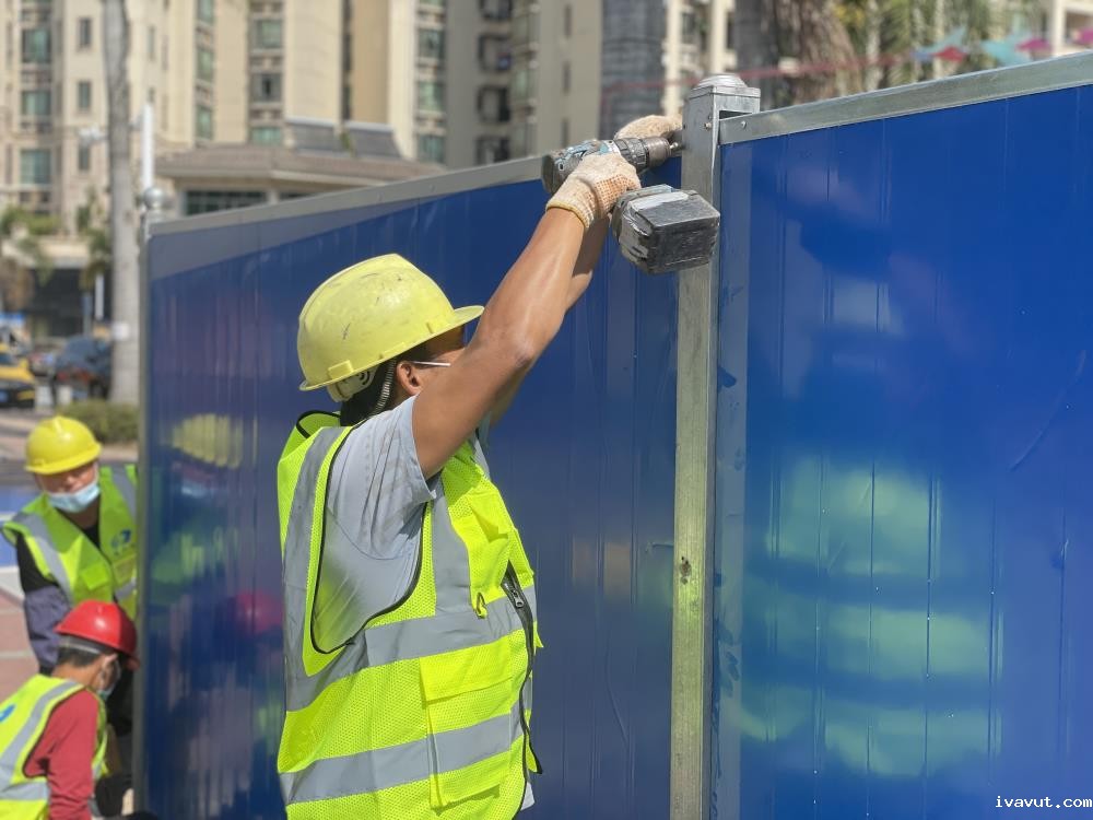 进行疫情防控围蔽现场作业