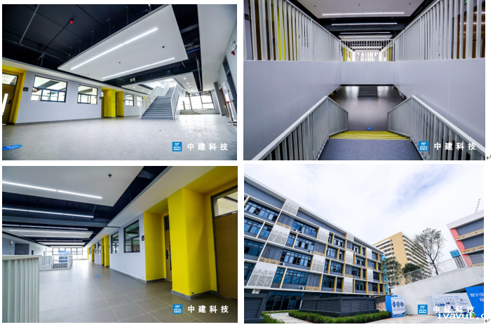 坪山区实验、锦龙、竹坑三所装配式学校项目由中建科技以EPC工程总承包模式承建,合同工期9个半月,精装交房,是全国首个采用装配式钢和混凝土组合结构建筑体系的学校项目,也是坪山区积极推进学校建设标准化的重点示范项目。该项目于2019年4月被列入“国家十三五重点研发计划项目示范工程”。为高质量、快速度完成项目建设,中建科技结合国家“十三五”重点研发计划项目——工业化建筑设计关键技术的创新成果,采用装配式钢和混凝土组合结构建筑体系,创新节点连接形式,实现86.5%装配率,达到国家装配式建筑3A等级标准。
