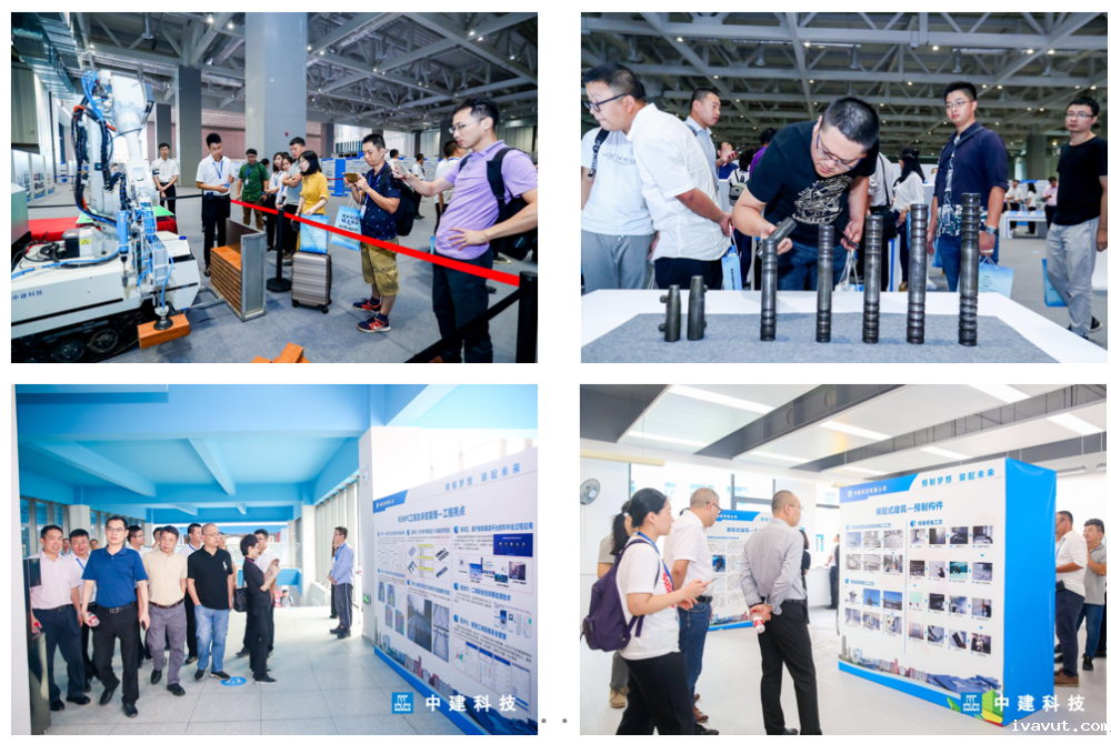 中建科技所展出小型一体化装配式智慧公厕、装配式建筑智慧建造平台、智能建造机器人、基于光纤光栅的结构健康监测系统、光伏镂空柱帽、渣土透水砖、生态弃土发泡混凝土、光伏建筑一体化外墙样板等十余项创新产品吸引大批嘉宾驻足观看、深入咨询。