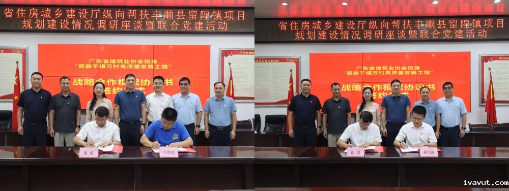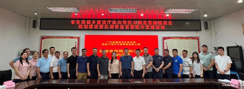 7月11日,协会陪同省住房城乡建设厅机关党委、建筑市场监管处赴丰顺县留隍镇开展建筑业企业助力帮扶“百千万工程”调研暨联合党建活动,并举行纵向帮扶(驻镇帮镇扶村)项目战略合作框架协议签约仪式。